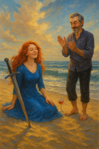Kein Sieg, kein Drama, nur ein tiefer Atemzug am Strand des Friedens. Eveline legt das alte Schwert nieder und entdeckt: Wahre Meisterschaft beginnt, wenn der Kampf endet.
