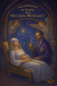 Im Tempel der heiligen Müdigkeit erkennt die Sternenkristallfrau, dass Erschöpfung kein Versagen ist – sondern der heilige Zwischenraum, in dem das Alte stirbt und das Neue still geboren wird.